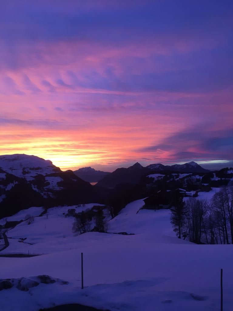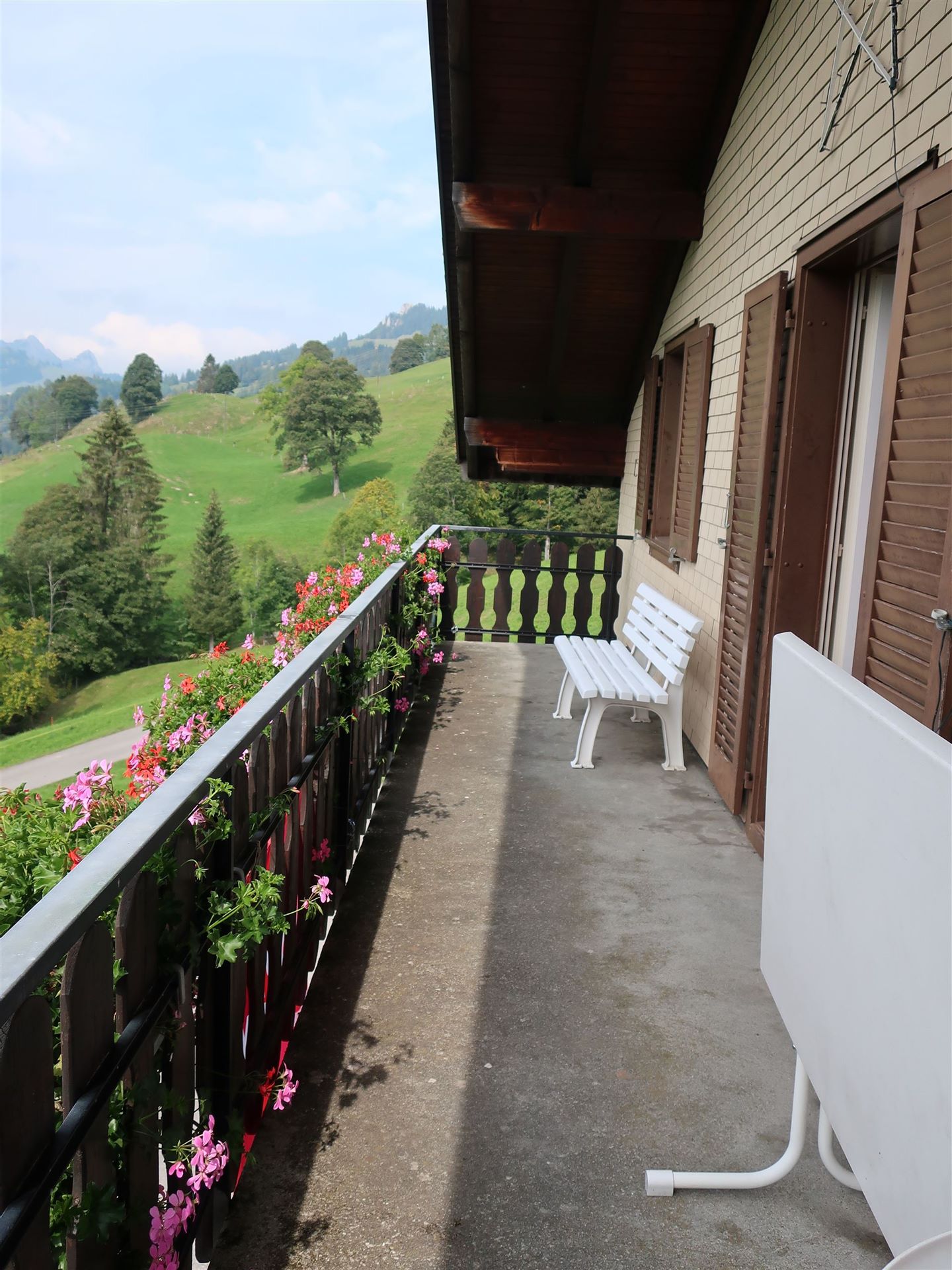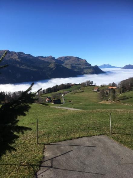 Vom grosszügigen Balkon aus kann die einzigartige Aussicht vom Blüemberg bis zum grossen Mythen genossen werden.